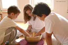 Die Schwingungen der Schalen, die sich im Raum ausbreiten, haben etwas Verbindendes und schaffen Harmonie. Sie wecken etwas Urvertrautes, Erinnerung an Weite, an Stille und an Geborgenheit. So kann eine Beziehung lebendig wachsen und der Zusammenhalt in der Familie gestärkt werden.